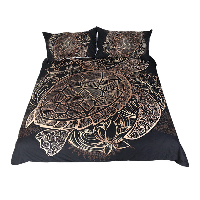 BeddingOutlet Turtles Bedding Set Animal Tortoise Duvet Bed Cover Set Flowers Lotus Home Textiles 3pcs